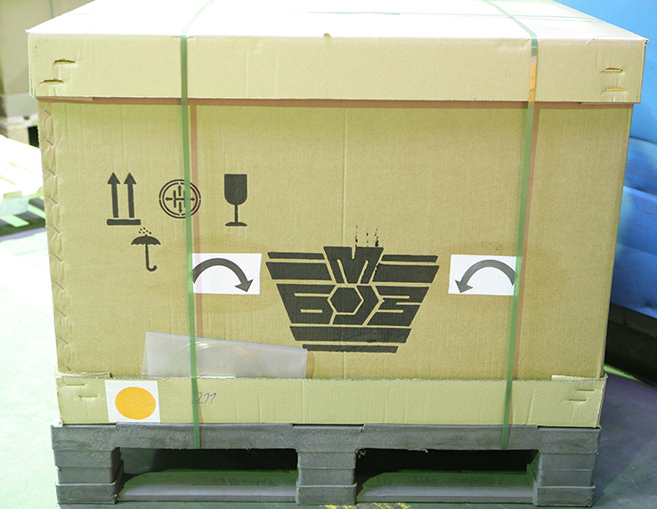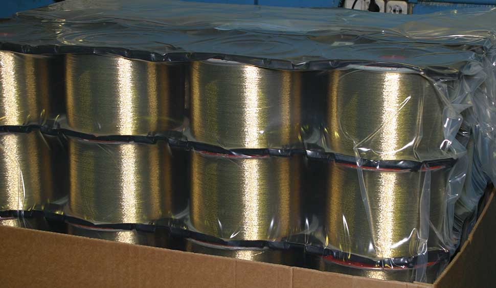 Упаковка металлокорда осуществляется в картонные короба, устанавливаемые на транспортные поддоны. для фиксации катушек с продукцией внутрь короба укладываются послойно пластиковые сепараторы. Вся продукция упаковывается в полиэтиленовый мешок. пластиковые поддоны, сепараторы и катушки являются многооборотной возвратной тарой.